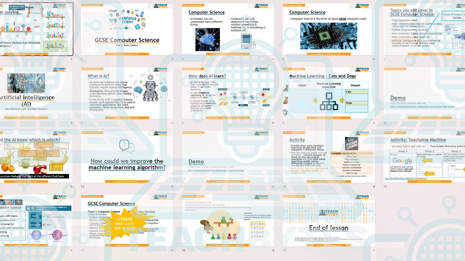 Options taster lesson on subject of AI and machine learning for GCSE Computer Science (aimed at OCR but can be used for AQA and Edexcel easily with little adaption needed) - perfect for when year 9s are picking options to promote and sell the subject.