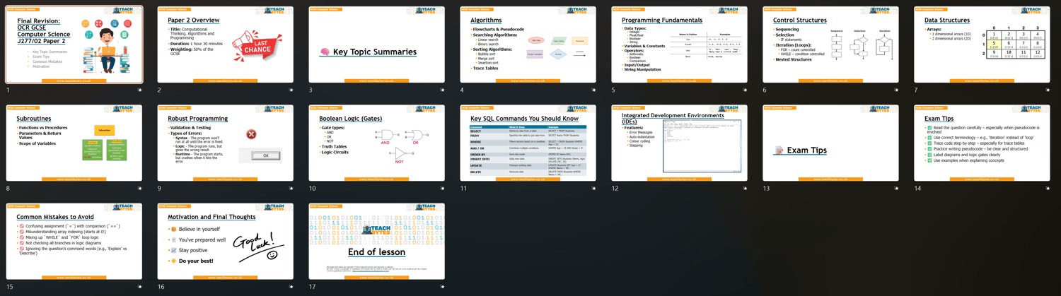 Pre-exam preperation for students on Paper 2 GCSE OCR Computer Science (can be easily adapted for other exam boards)